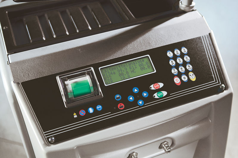 Mit dem Thermodrucker ist eine mehrfache Dokumentation der durchgeführten Arbeiten möglich. Das Kfz-Klimaservicegerät WAECO ASC 5300 G wurde so entwickelt, dass es mit der extrem robusten und 8-fach gelagerten Waage auch ohne Waagenfeststellung für alle Kfz-Werkstätten geeignet ist. Der komplette Servicevorgang erfolgt vollständig automatisch durchgeführt, mit automatischem Altölablass und gewichtsabhängiger Öl- und Kontrastmittelbefüllung.