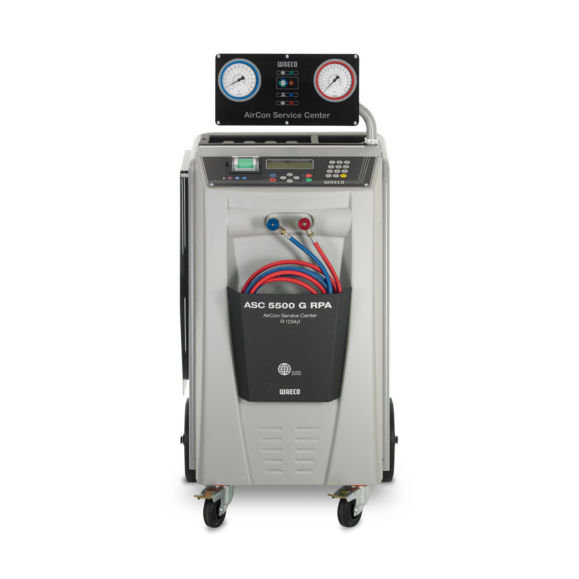 Das Kfz-Klimaservicegerät WAECO ASC 5500G RPA für das Kältemittel R1234yf ist mit einer vollautomatischen Kältemittelanalyse, einem stabilen Metallgehäuse, einer internen 16 kg Vorratsflasche und einer Vakuumleistung von 5 Kfz/h ausgestattet. Mit dem serienmäßigen Drucker werden alle durchgeführten Arbeiten dokumentiert, dabei ist es auch möglich den Ausdruck beliebig oft zu wiederholen.